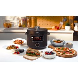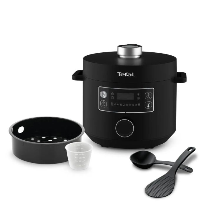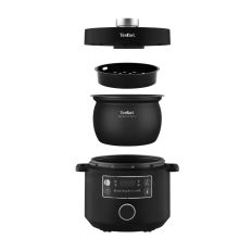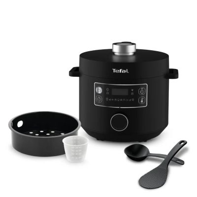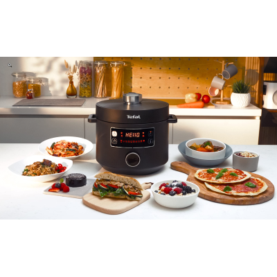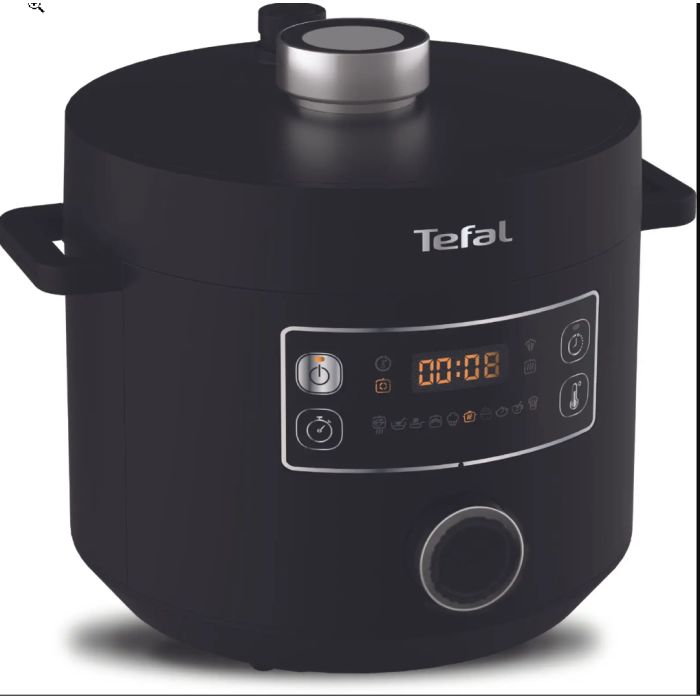 Tefal Turbo-Cuisine CY754830,električni ekspres lonac za kuhanje.Do 3 puta brže spremanje omiljenih obroka.10 automatskih programa.Odgođeni start do 12h.24h održavanje temperature,aktivira se po završetku ciklusa kuhanja.Safe-release preassure system
