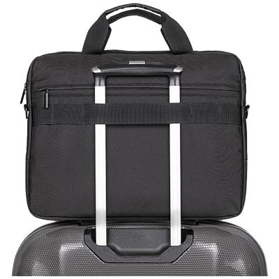 Jednostavan i tanak dizajn, dodatni džep na stražnjoj strani za više dodatne opreme, organizirani džepovi s patentnim zatvaračem sprijeda, podstavljeni pretinac za prijenosno računalo, podesiva i uklonjiva naramenica, remen za prtljagu omogućuje nošenje putne torbe za prijenosno računalo na prtljazi/koferu, klizanje preko uspravne cijevi ručke za lakše nošenje.