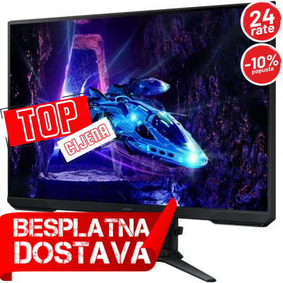 Monitor koristi VA panel koji donosi visok kontrast i duboke crne tonove, čineći tamne scene jasnijim i vizuelno bogatijim. Glavna prednost ovog modela je 180Hz osvježenje, koje osigurava izuzetno glatko kretanje slike i vidljivu prednost u brzim i kompetitivnim igrama. Uz 1ms MPRT vrijeme odziva, zamućenje pokreta je minimalno, a akcija ostaje oštra i precizna.