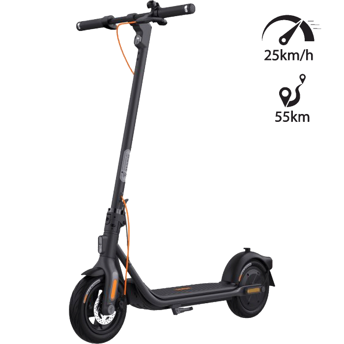 Ninebot KickScooter F2 Plus by Segway savršen je suputnik za svakodnevnu vožnju zahvaljujući velikom dometu do 55 km i maksimalnoj snazi od 800 W. F2 Plus pun je novih značajki s odličnim omjerom cijene i performansi i nudi vam sve što trebate. Dvostruki sustav kočenja, ugrađeni pokazivači smjera, sustav kontrole proklizavanja (TCS), poboljšane gume koje se same obnavljaju, visoke performanse i zahvaljujući integriranoj funkciji Apple Find My, znat ćete gdje je. Ovo će također učiniti vaše putovanje sigurnim i zabavnim.