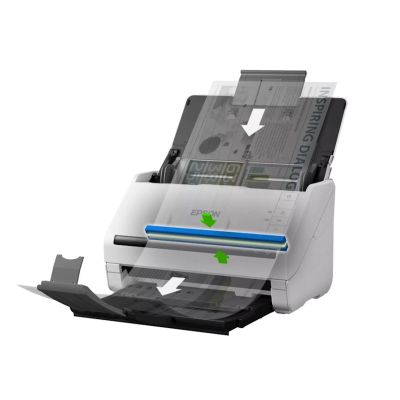 Skener EPSON WF DS-530II je inovativni poslovni skener. Omogucava skeniranje zgužvane, dugacke ili osjetljive dokumentacije bez povecavanja velicine datoteke. Omogucava skeniranje raznih predmeta, od poštanskih markica do pasoša, knjiga i drugo. Uz automatski posluživac listova kapaciteta 50 stranica i mogucnost skeniranja do 35 str./min. ili 70 sl./min., skener nudi velik izbor opcija rukovanja medijima koje vam omogucuju brzo snimanje, indeksiranje, pohranu i dijeljenje poslovnih dokumenata.