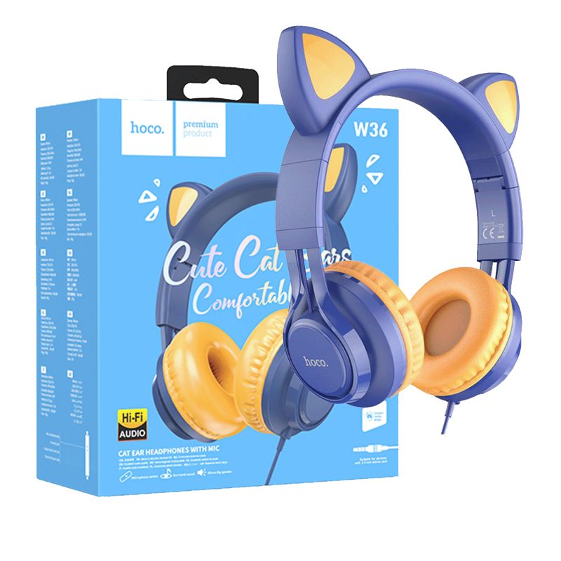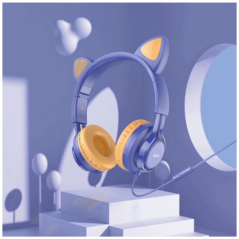 hoco. Slušalice sa mikrofonom, mačje uši, plava - W36 Cat ear, midnight blue