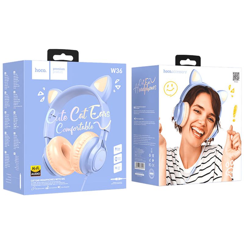 hoco. Slušalice sa mikrofonom, mačje uši, plava - W36 slušalice Mačje uši,Dream Blue