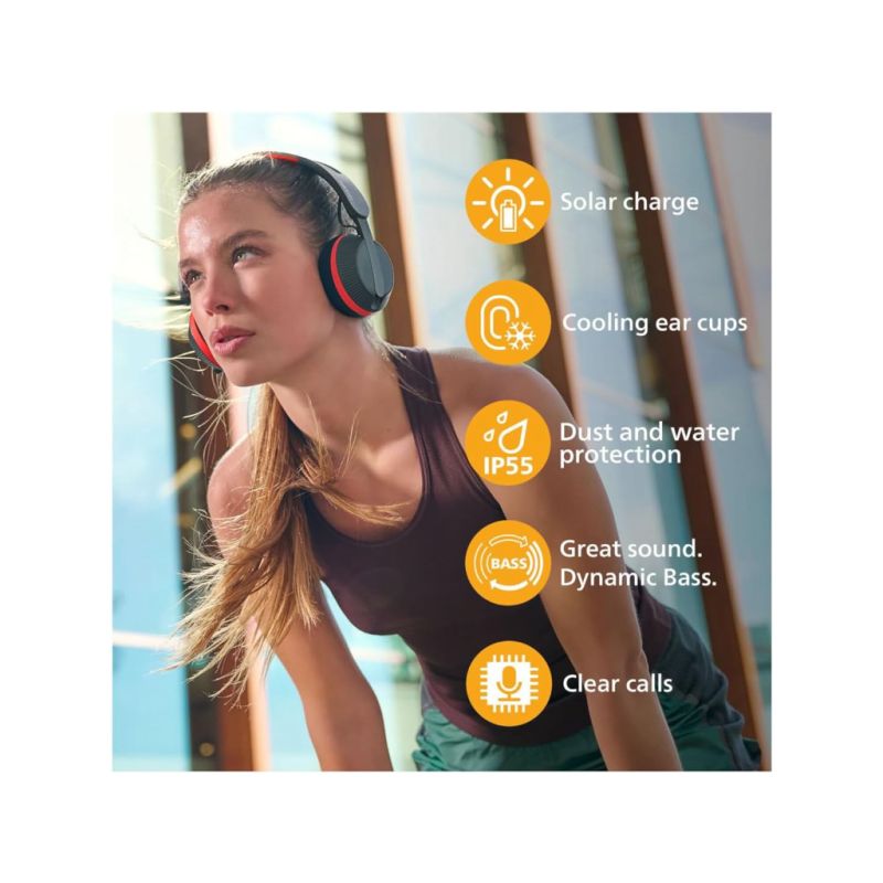 Philips TAA6219BK BT slušalice; Solarna tehnologija Powerfoyle; Samopunjive slušalice; Rezerva baterije od 80 sati; Perivi jastučići za uši; zaštita IP55; BT u više tačaka; za aktivan stil života