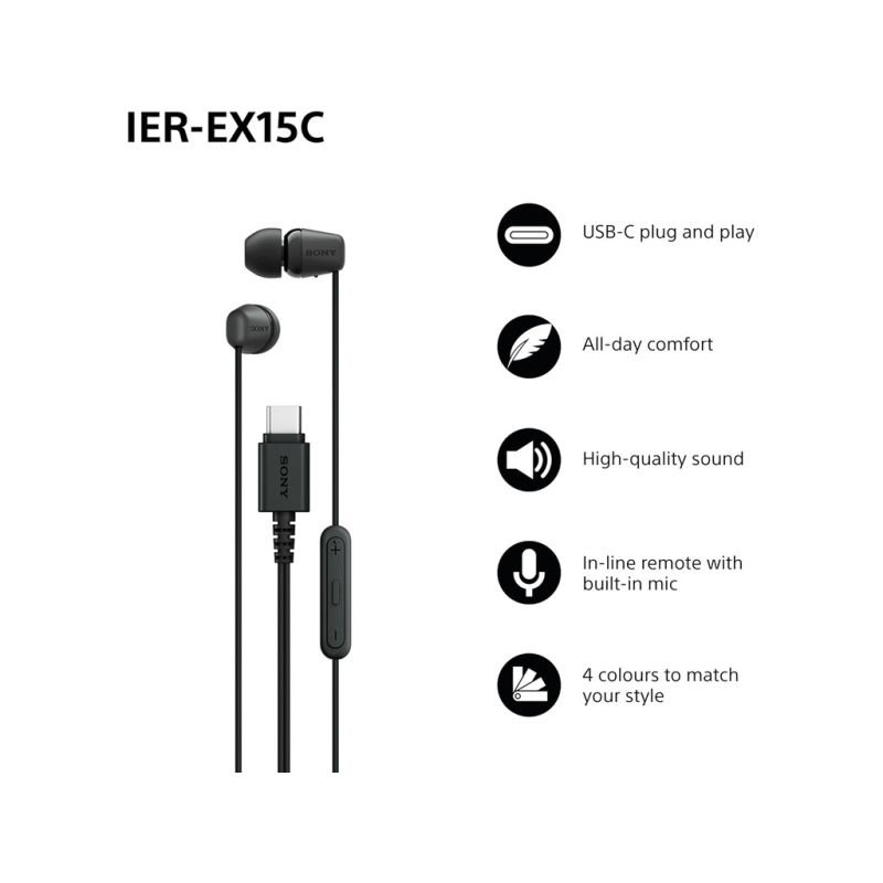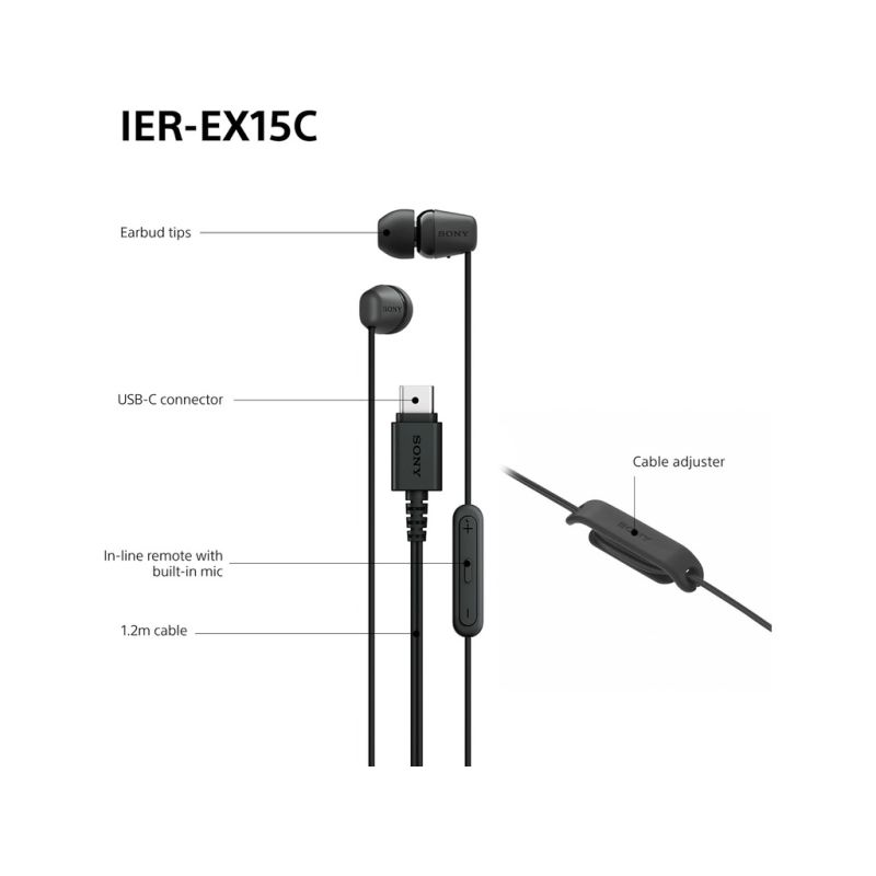 Sony In ear žične slušalice, USB-C, Androis/iOS kompatibilne, 5mm drajveri za snažan bas, mikrofon višesmjerni, daljinska kontrola, glasovni asistent, kabl 1.2m, XS/M/XL silikonski umetci, boja crna
