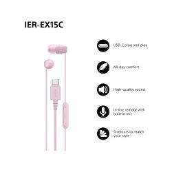 Sony In ear žične slušalice, USB-C, Androis/iOS kompatibilne, 5mm drajveri za snažan bas, mikrofon višesmjerni, daljinska kontrola, glasovni asistent, kabl 1.2m, XS/M/XL silikonski umetci, boja roza