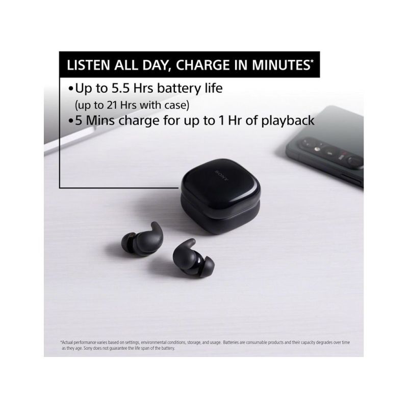 Sony LinkBuds FIT X True Wireless FS910NB; dizajn za udobnost (udobne za nositi tokom cijelog dana, pogodne za trening aktivnosti; automatiziran,prilagodljiv zvuk; ponistavanje buke; V2 procesor; upravljanje dodirom, pokretom, glasom; boja crna