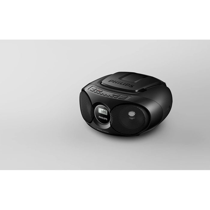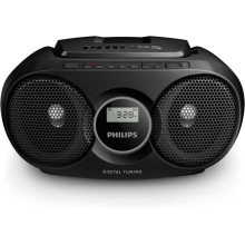 Philips CD Soundmachine; CD; CD-R; CD-RW; FM Antena; Automatsko digitalno podesavanje; stereo; izlazna snaga (RMS) 3W; 2 zvucnika;audio ulaz (3,5mm); napajanje AC ili baterija; boja crna