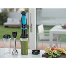 SAŽETAK MultiQuick 5 Vario Fit je rucni blender koji radi više – savršen je 2u1 alat za svježe i zdrave recepte. Sa svojim pametnim novim Blend&Go nastavkom, možete pripremiti i ponijeti svježe smoothije sa sobom u istoj prakticnoj bocici od 600 ml. Jednostavno ga napunite svojim omiljenim svježim sastojcima, izmiješajte i krenite. Uživanje u zdravim smutijima bogatim hranljivim sastojcima gde god da idete postalo je mnogo lakše. Stoga MultiQuick 5 Vario Fit ima sve što vam je potrebno za pripremu svježih, hranjivih jela koja ce podržati vaš zdrav nacin života.