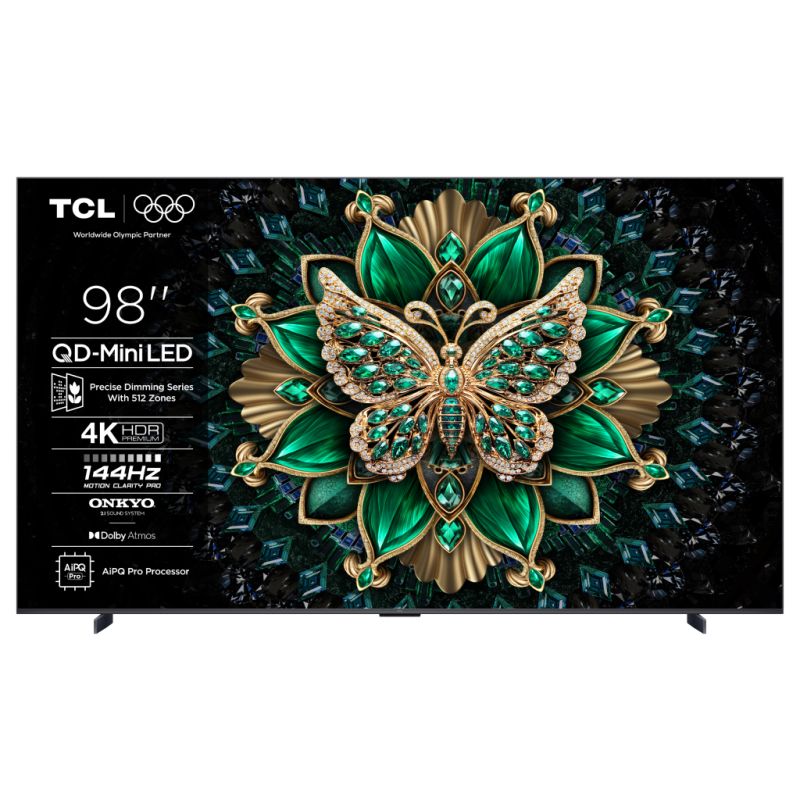 TCL 98"C6K 4K QD-Mini LED TV; 144Hz native display; Matte HVA Panel; Google TV; Game Master; Dolby Atmos; Onkyo 2.1; HDR Premium; HDR10+ HDR10 HLG; Netflix Youtube Amazon Prime Apple TV; Chromecast & T-cast; HDMI: 4x 2.1; USB: 1x 3.0;
