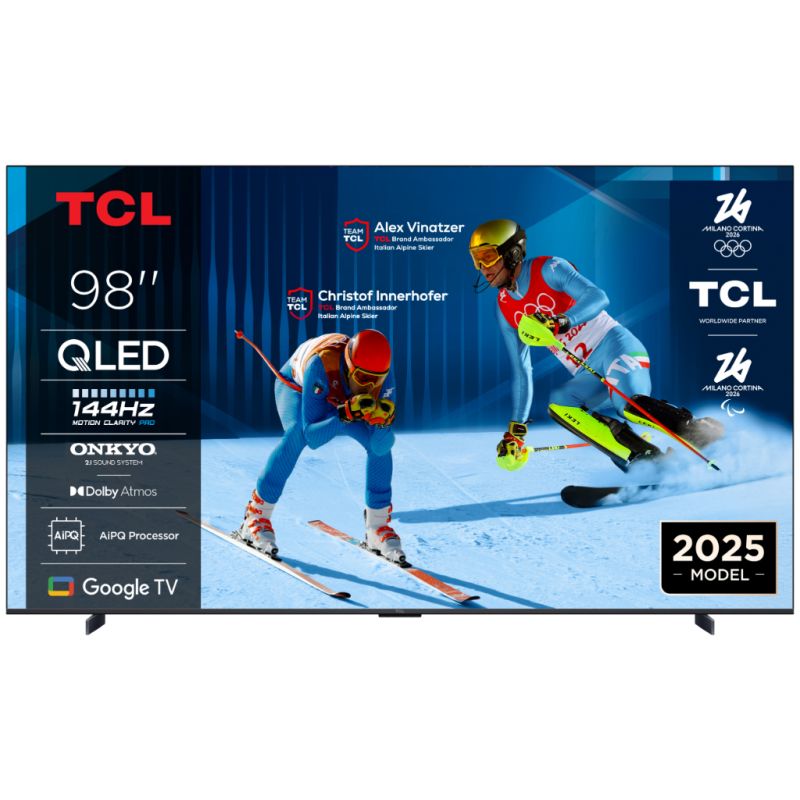 TCL 98"P8K 4K QLED TV 144Hz native display;Google TV; Motion Clarity Pro; Game Master; Onkyo 2.1; Dolby Vision, HDR10+, HDR10, HLG; AiPQ Pro Processor; Netflix Youtube Amazon Prime Apple TV; Chromecast & T-cast; HDMI: 4x 2.1; USB: 1x 3.0