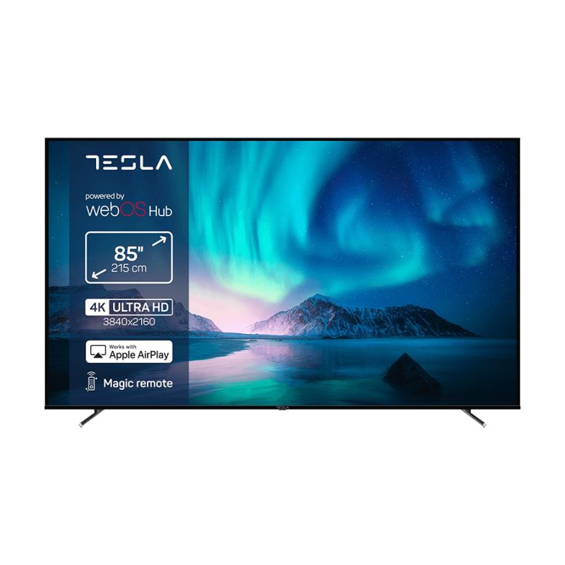 Brand: TESLA§Televizori >> Ekran >> Dijagonala Ekrana:85''§Televizori >> Ekran >> Rezolucija Ekrana:4K Ultra HD (3840 x 2160)§Televizori >> Ekran >> Vrsta Ekrana:LED§Televizori >> SMART >> OS:WebOS§Televizori >> Ostalo >> 3D TV:Ne§Televizori >> Ostalo >> Zakrivljenost:Ravni§Televizori >> Povezivanje >> Konektori:3x HDMI§Televizori >> Povezivanje >> Konektori:2x USB§Televizori >> Povezivanje >> Konektori:LAN§Televizori >> Povezivanje >> Konektori:Wi-Fi§Televizori >> Povezivanje >> Konektori:Bluetooth§Televizori >> Povezivanje >> Konektori:Cl slot§Televizori >> Ekran >> Osvježenje:60Hz§Televizori >> Povezivanje >> Tuner:DVB-T2/T/C/S2/S