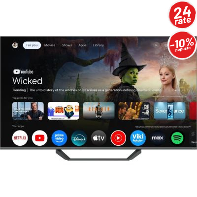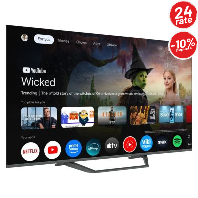 TESLA QLED TV Q55E655GUS UHD Google TV;EON,Netflix,Prime Video;Orion TV,Deezer,Spotify,YouTube kids,Asphalt 8,VLC player,KODI,HBO GO;DVB-T/T2/C/S/S2;HDMIx3:USBx2:CI;2x12W Box Zvucnici