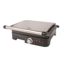 Snaga 1800 W, površina za pečenje 23x29 cm grijaće ploče s premazom protiv lijepljenja, drška hladna na dodir, kućište od nehrđajućeg čelika, posuda za skupljanje suvišne masnoće, podesiva temperatura za pečenje, otvaranje 180° i 90°