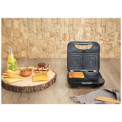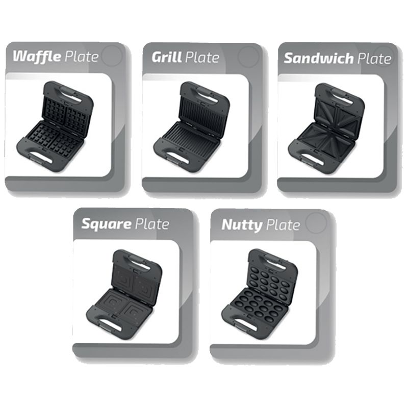 Toster 800 W, 5u1, veličina ploče 21.6 x 12 cm, ploče od nehrđajućeg čelika, 5 različitih ploča, sustav zaključavanja, indikator rada, automatska kontrola temperature, neljepljiva uklonjiva ploča jednostavna za čišćenje, uspravno odlaganje uz uštedu prostora