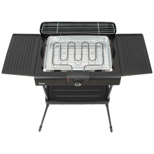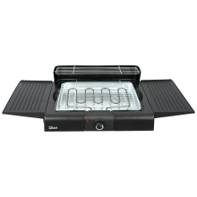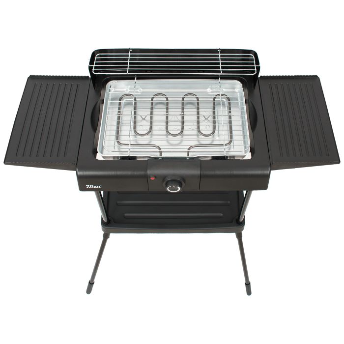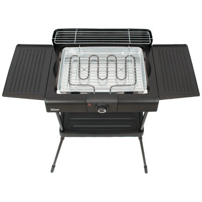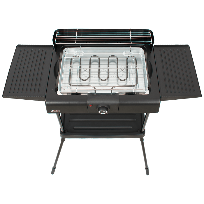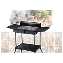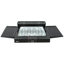 Električni grill, samostojeći, snaga 2400 W, glatko podešavanje temperature, grijač od nehrđajućeg čelika sa termostatom, indikator, odvojivi grijač, posuda za kapanje ispod rešetke i grijaćeg elementa, podešavanje visine rešetke u tri opcije, zaštita od vjetra
