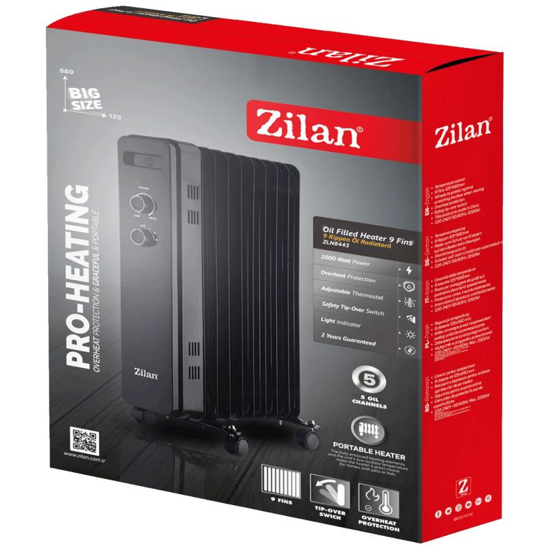 Radijator uljni Zilan ZLN8443 2000W je pouzdan uljni radijator namijenjen dugotrajnom i ravnomjernom grijanju zatvorenih prostora. Zahvaljujući uljnom sistemu grijanja, toplota se akumulira i zadržava i nakon isključivanja uređaja, čime se osigurava ugodan ambijent uz efikasnu potrošnju energije.