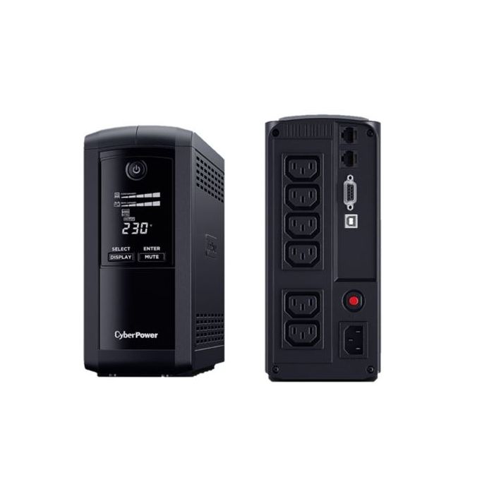 Cyber Power UPS odlično je rješenje za opskrbu stabilnim naponom. Na preglednom LCD-u uvijek je dostupan trenutni status uređaja. Mogučnost spajanja s računalom pomoću softvera za upravljenje. UPS ima 6 IEC utičnica, od kojih su 4 na bateriji, a 2 samo kao prenaponska zaštita. GreenPower UPS™ tehnologija : Štedi potrošnju UPS-a Automatic Voltage Regulator (AVR) Auto scheduled software USB i serijski portovi za spoj Tel / Fax / Modem / DSL / Mrežba zaštita LCD prikaz Auto restart / Auto charge Uštedite do 75% na potrošnji el.energije