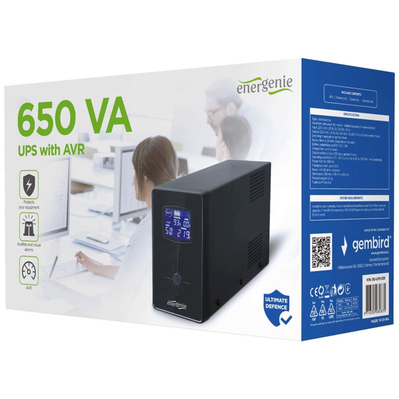 Gembird UPS/ Izvor neprekidnog napajanja, 650VA, LCD display - EG-UPS-031