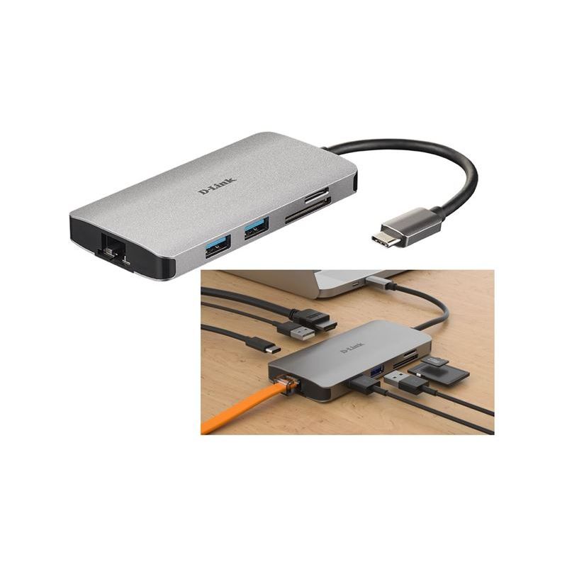 D-Link USB-C HUB, DUBM810, 8-in-1 USB-C Hub with HDMI/Ethernet/Card Reader/Power Delivery, 3x USB 3.0 SuperSpeed porta, Ultra HD video rezolucija 4K @ 30Hz, HDCO 2.2 kompatibilan