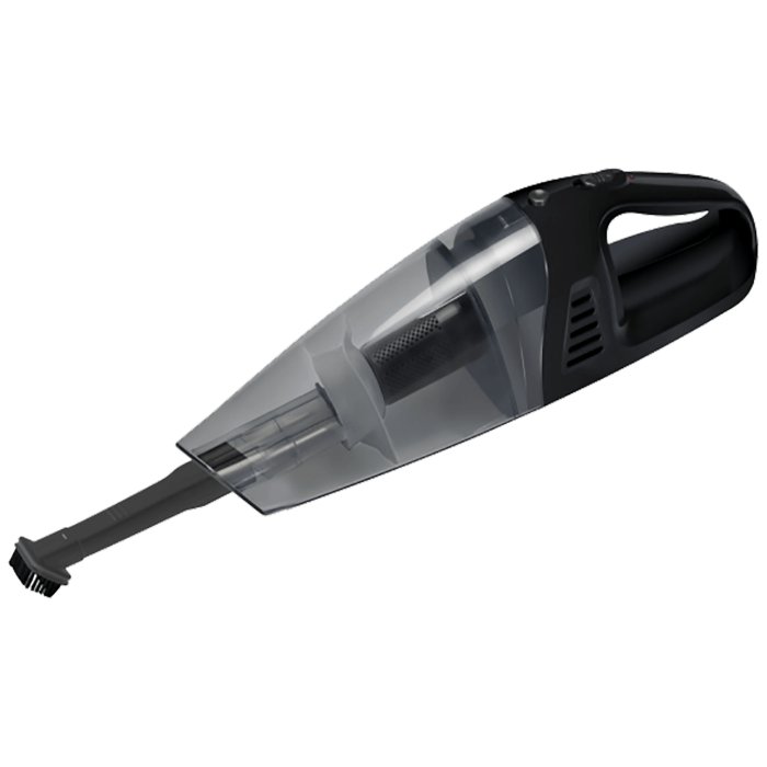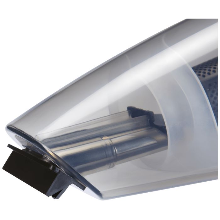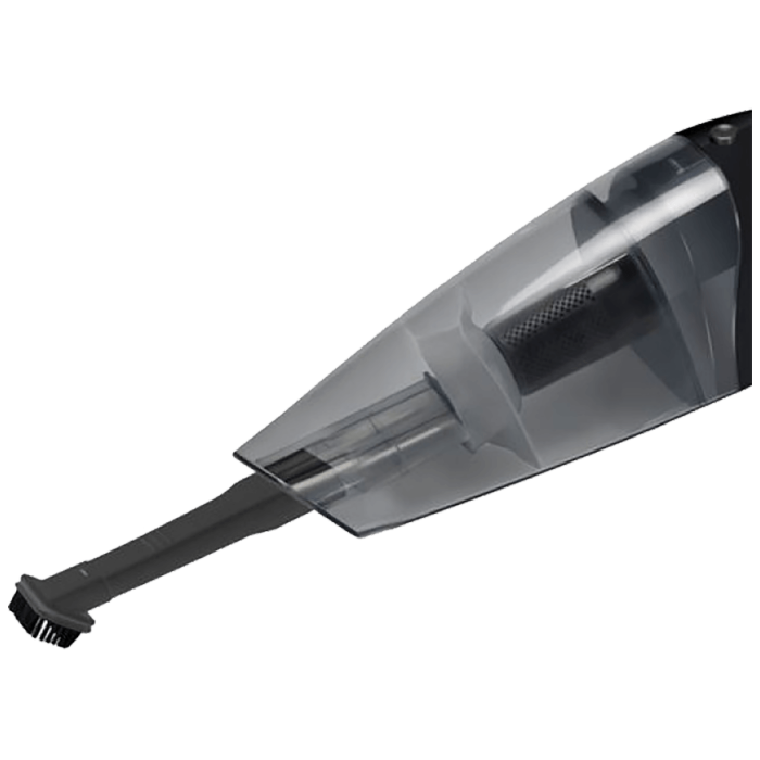 Usisavač ručni, akumulatorski, za mokro i suho usisavanje, sustav ciklonskog filtra, perivi trajni filter, Ni-Mh baterija 12 V, vrijeme rada do 20 minuta, vrijeme punjenja cca 8 h, stalak za punjenje, posuda za prašinu 500 ml.