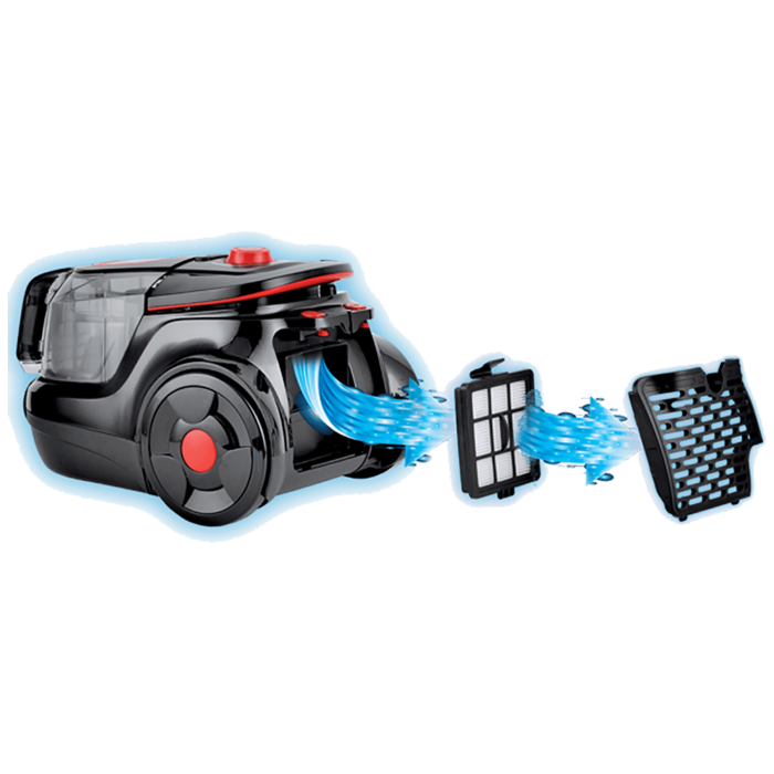 Usisavač sa posudom, snaga 750 W, usisna snaga 160 W, kapacitet posude za prašinu 2 lit., HEPA filter, sustav dvostrukog filtriranja, razina buke 75 dB, dužina kabla 4.5 metara. Jednostavan mehanizam pražnjena posude za prašinu,teleskopska cijev 78 cm, podesiva snaga usisavanja