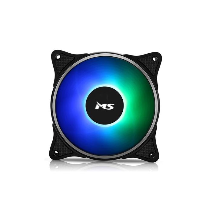 MS FREEZE A300 ARGB ventilator, Dimenzije: 120*120*25mm, okvir sa 7 lopatica, LED boja: vanjski prsten + unutarnji=Rainbow, Broj LED svjetala: 8PCS (unutarnje) 8PCS,(bočno) 12PCS, Radni napon: 5V-13,2V, Brzina: 1000RPM ± 10%, Konektor: PH-3P L = 500 mm