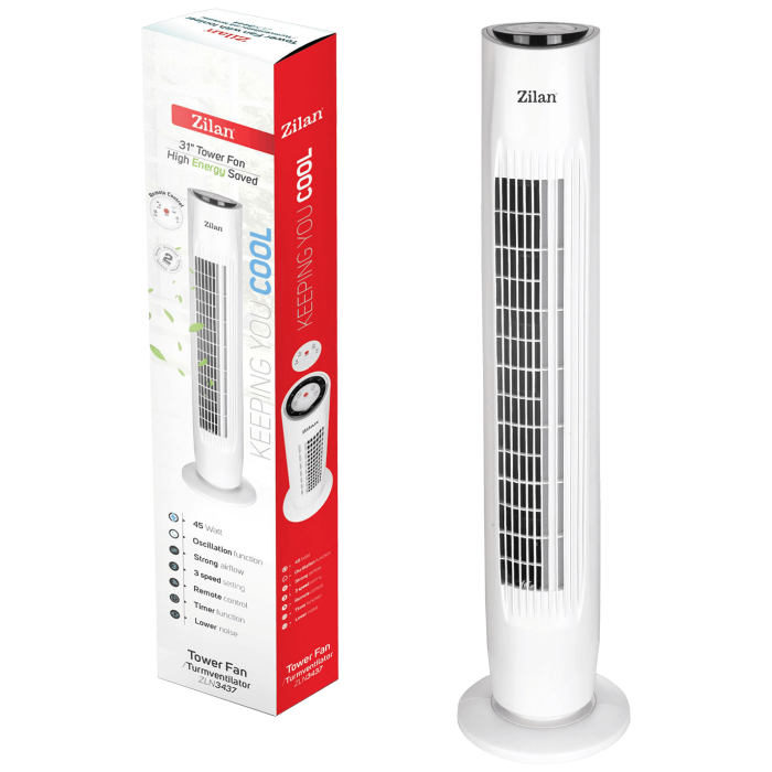 Zilan Ventilator stupni, daljinski upravljač, 45W, 80 cm, ±80° - ZLN3437