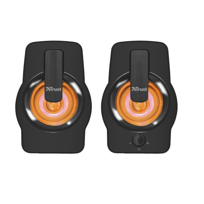 Trust Gemi RGB 2.0 set zvučnika, crni. Kompaktni set zvučnika sa elegantnim dizajnom i RGB LED osvjetljenjem, 12 W, 3.5 mm audio input, dužina napojnog i audio kabla 1,4 m.