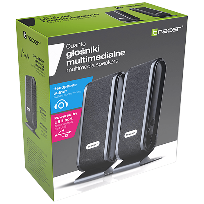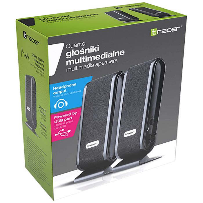 TRACER QUANTO zvučnici predstavnik su niza proizvoda za korisnike koji traže jednostavna i funkcionalna rješenja.QUANTO je model atraktivnog dizajna i male veličine. Odgovarat će čak i malom stolu. Dodatna prednost je mogućnost upotrebe izlaza sa slušalice.
